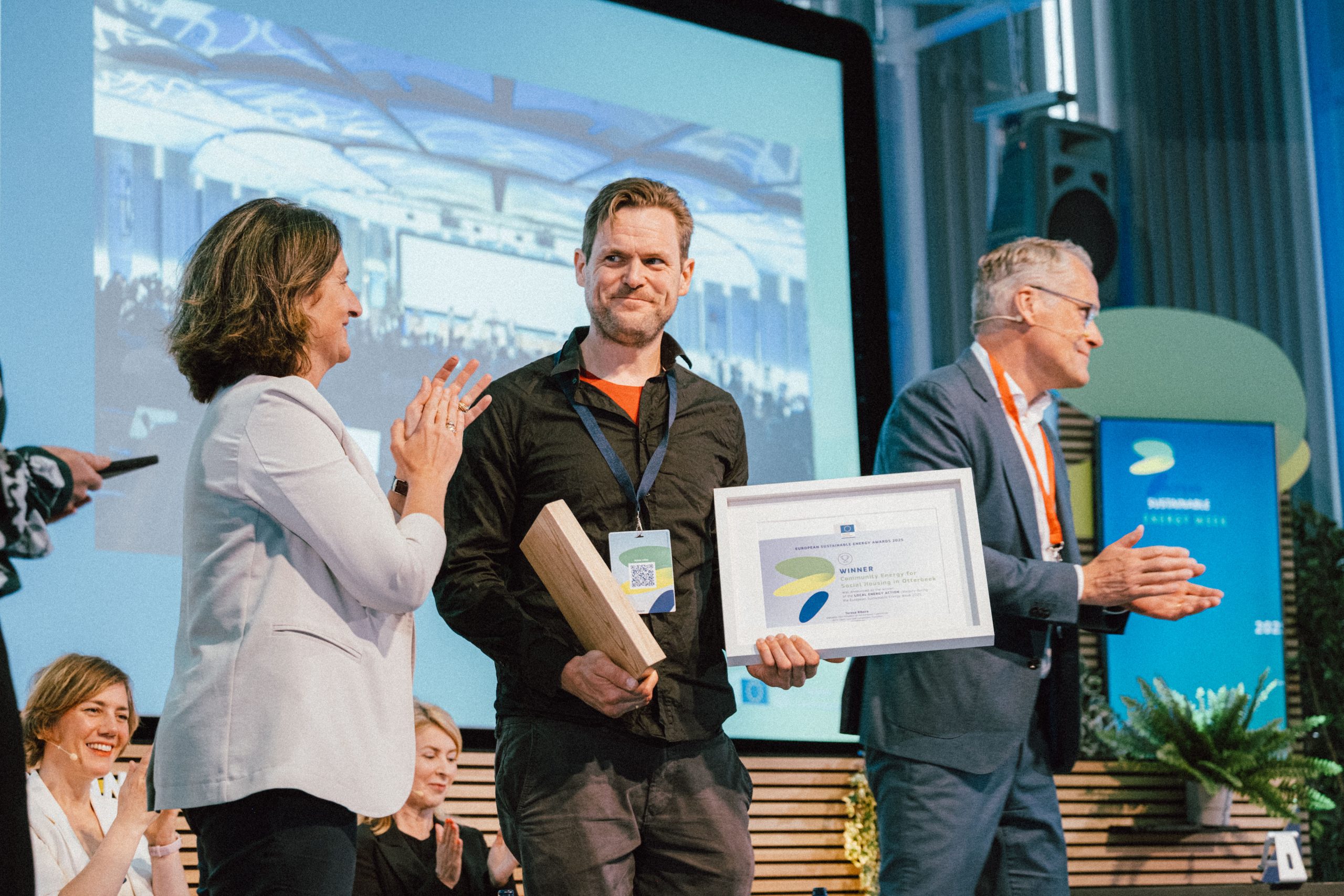 The Community Energy for Social Housing initiative in Otterbeek, Belgium, came first in the Local Energy Action category, for its work in providing renewable energy access to vulnerable tenants, working with the community to equip 200 housing units with solar panels and deliver clean energy at below-market rates. The initiative, which received EU support under the TANDEMSproject, developed a EUR 1 million investment model funded through citizen contributions, showcasing the power of community-driven financing.