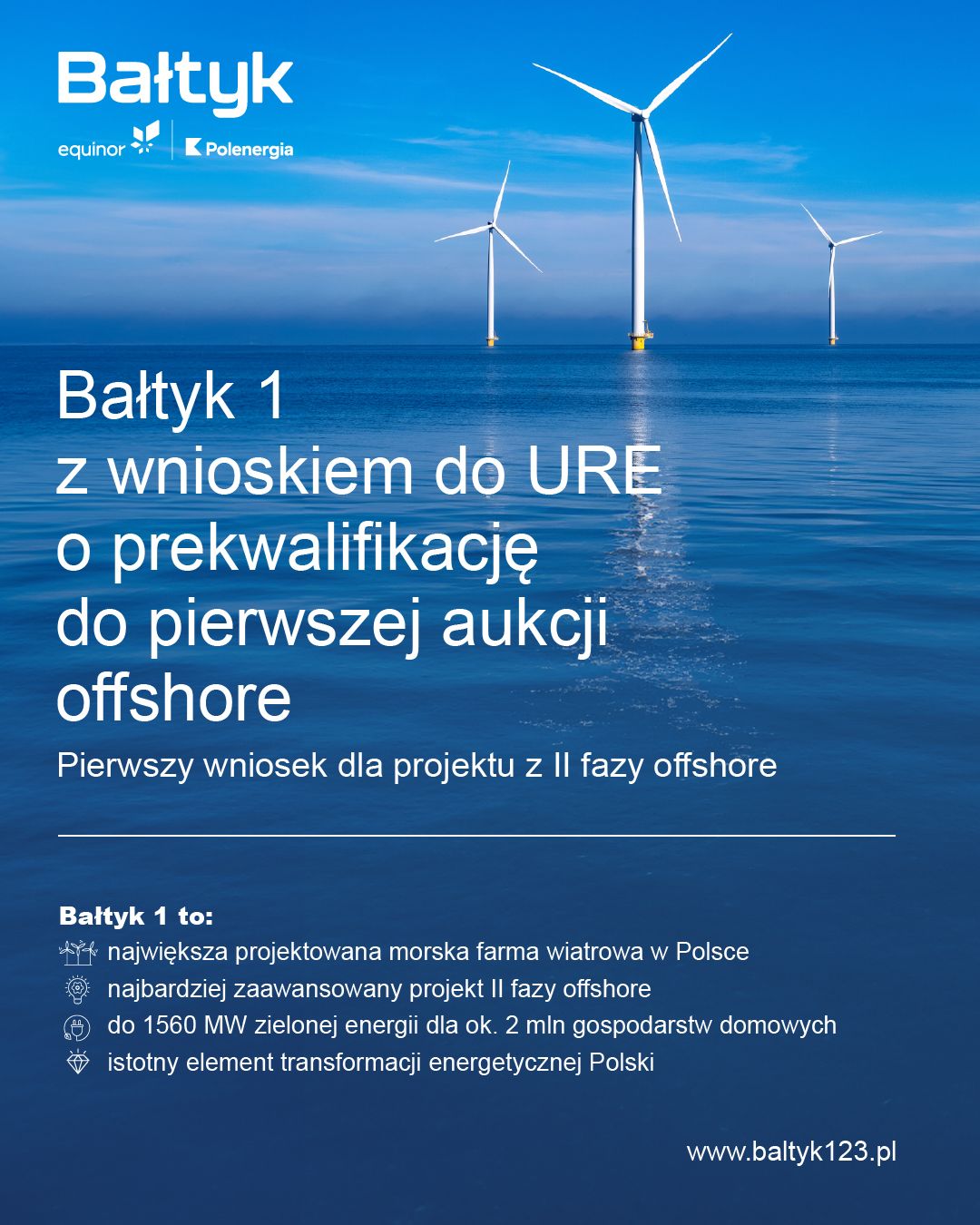 Wspólnie z partnerem Grupa Polenergia, Equinor złożył do Urzędu Regulacji Energetyki pierwszy w Polsce wniosek o prekwalifikację do aukcji offshore – dla projektu Bałtyk 1, największej i najbardziej zaawansowanej farmy wiatrowej II fazy na polskim Bałtyku.