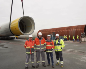 “Obecne fundamenty są ogromnymi stalowymi konstrukcjami, przypominającymi przerośnięte słomki. Konstrukcje te, o długości prawie 100 metrów i średnicy 10 metrów, są wbijane w dno morskie, aby ustabilizować wieżę, turbinę i łopaty, które zostaną zamontowane na górze” – mówi Jeppe la Cour, dyrektor handlowy w Port of Roenne A/S.